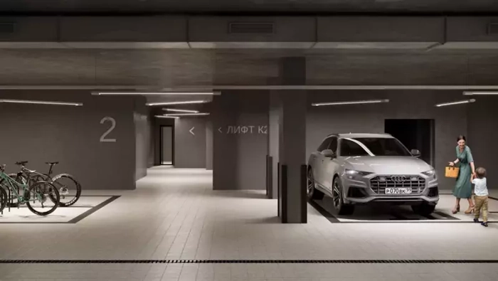 Подземный паркинг с лифтом на более 660 машиномест и открытая автостоянка