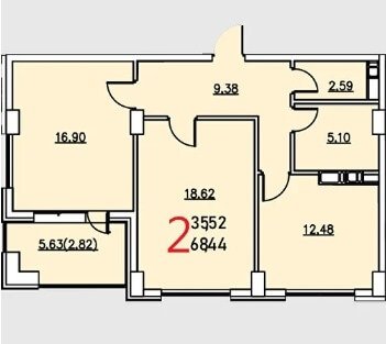 Площадь от 68.44 м2