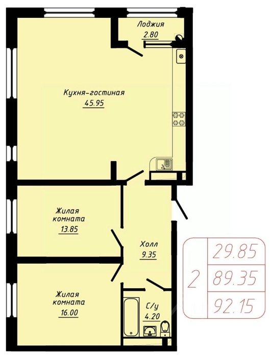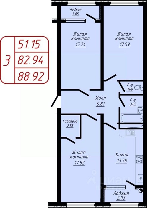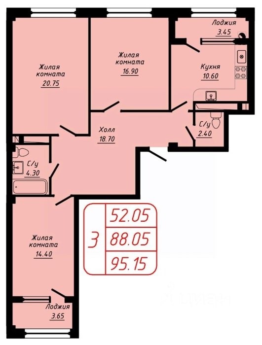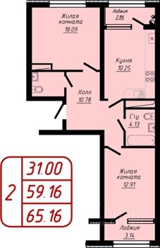 Площадь от 56.8 м2