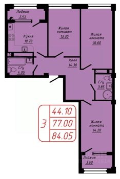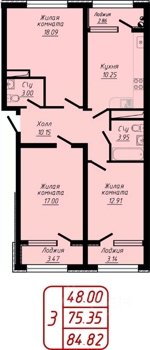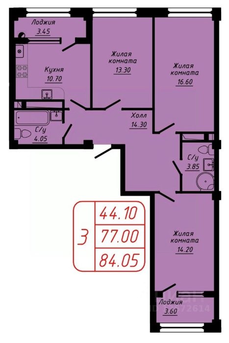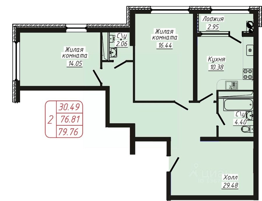 Площадь от 76.7 м2